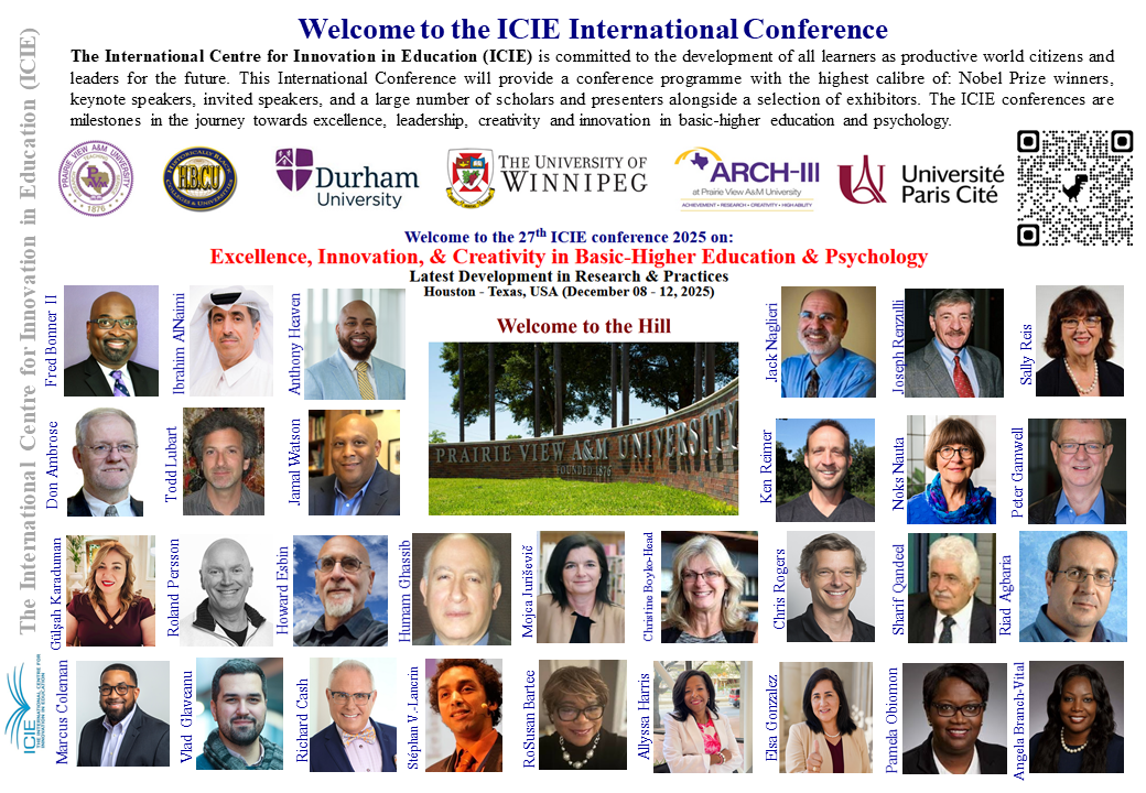 We are honored to welcome a distinguished lineup of keynote and invited speakers who are leaders in their fields and pioneers in innovation education, research, excellence, creativity, gifted education, and other categories. Their expertise and insights will provide valuable perspectives and inspire engaging discussions throughout this international conference (Houston, Texas, 8-12 December, 2025).